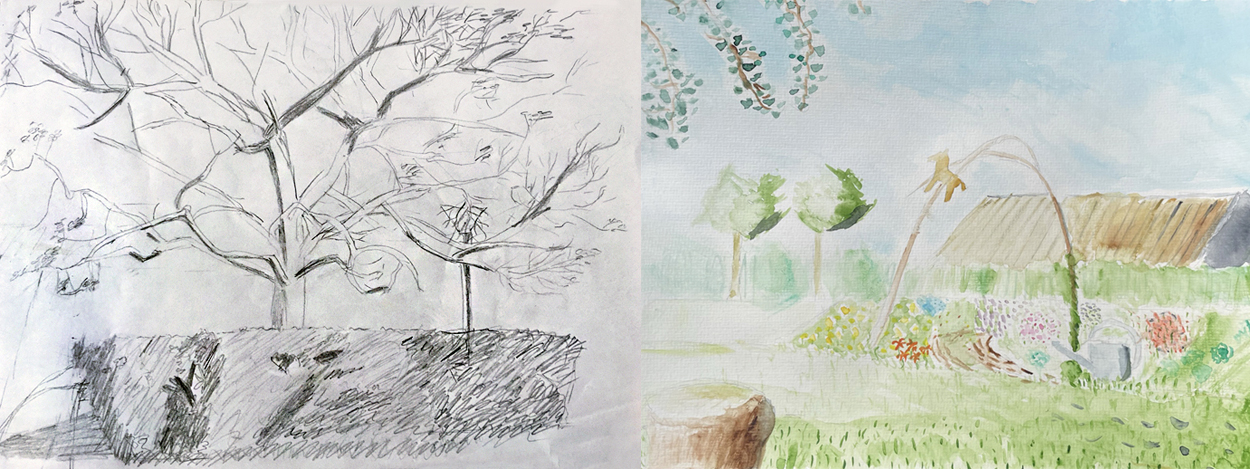 We spreken elke keer af op een andere plek. Zo tekenen en schilderen we vaak op landgoed Amelisweerd in Bunnik, en in Utrecht in het Wilhelminapark, Pandhof Sinte Marie, het Griftpark, Park Oog in Al, om maar een paar stekjes te noemen. Bij regen nemen we onze toevlucht tot de kas van de Oude Hortus. Elk jaar verzinnen we er wel een nieuwe locatie bij, vaak aangebracht door cursisten. Zo blijft het afwisselend.
